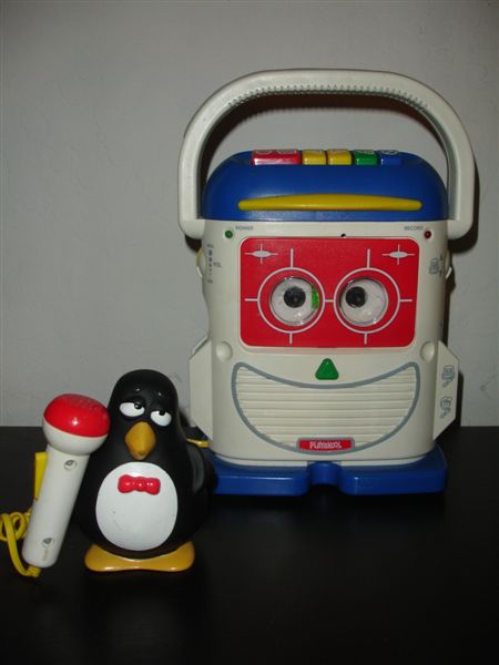 - This website cites “Playskool Rockin’ Robot” as a tape player, and the only tape player in the TS movies is Mr. Mike: