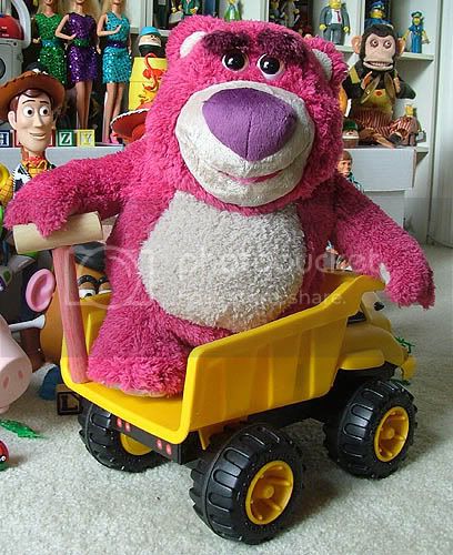 I had bought a dump truck for Lotso on ebay. I mismeasured and it is a bit smaller than I expected it be, but I actually like how it looks with him, and it doesn’t take up half of the room that one in proper scale would take (if they even make such a truck.)