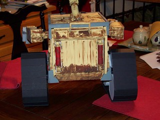 Last February my son needed to make a Valentine box for school. He asked if we could make a Wall-e box. I said sure. So we headed to Hobby Lobby to pick up some poster board, foamcore board, paint and hot glue. It took about 2 days to finish. I think it turned out great and it was a hit at school. Let me know what you think.
