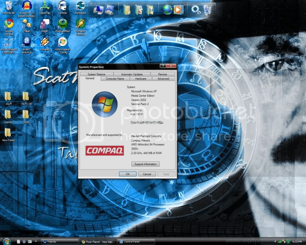 I’m too cheap to buy Vista. But I like the way it looks. So I have used a program to make it look like Vista called “Vista Inspirat 2”.
