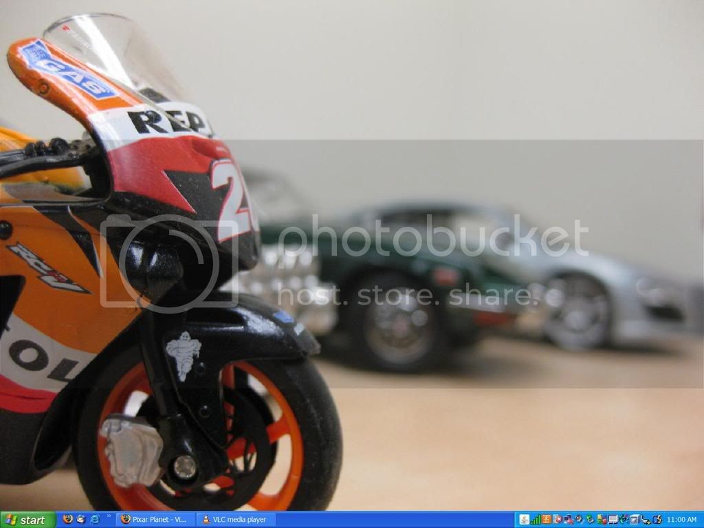 Mine’s some more fun with macro. From my desk, it’s Dani Pedrosa’s Repsol Honda RC211V, Markko Märtin’s Ford Focus RS WRC 03, a 1970 Nissan Fairlady Z (S30), and a 2008 Audi R8.