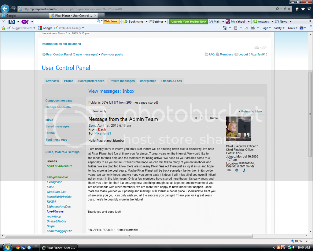 Interesting little April Fool’s Joke. I think a tiny part of me would have died if that came true. And Spirit, were you helping in playing along with the little prank? I see that you were on at the same time. Rather suspicious.
