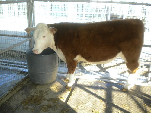 I went and met my sister’s steer today, he is Socks. her other steer had behavioral issues and was dangerous, so it’s going to be sold for meet. And she’ll use Socks for fair.