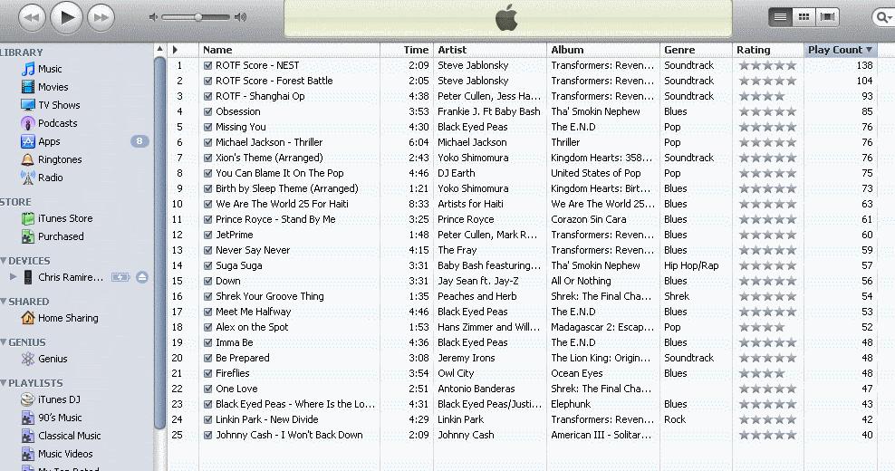 I bolded some fun ones. My top song has 78 plays and the last five songs have 25 plays each.