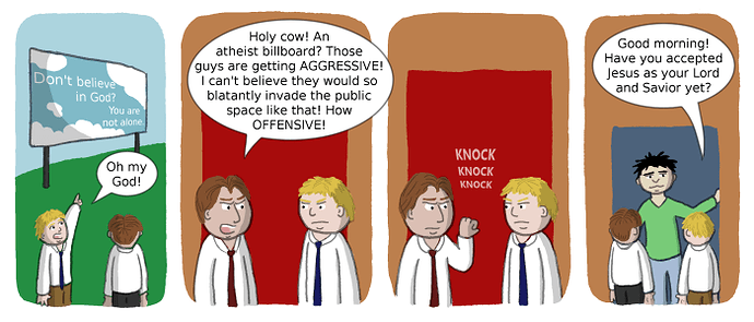 Anyway, I’m sure the religious people themselves would hate to be preached at- just like in that comic of yours! It’s a two-way system.
